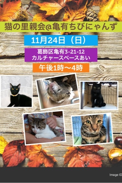| イベント内容 | 11/24 日曜日午後1時~4時 ご質問大歓迎です。 分からない事などなんでも聞いて下さい。 ご家族の皆様で生涯、家族の一員としてたっぷり愛情を注いでくださるご家庭をお待ちしております。 ご希望に添えない場合もございますのでご了承下さい。 【以下の方には譲渡しておりません】 ・猫の飼育が許可されていない住居にお住まいの方 ・未成年者、友人同士&同棲でお住まいの方、乳児のいるご家庭 ・単身者、高齢者のみのご家庭の方 ・脱走防止対策にご協力頂けない方 ・経済的に不安定な方(休職中、就職活動中、アルバイト等) ・仔猫の場合は留守番多いご家庭 ・住居の構造を聞かせていただく事があります。(階下への騒音など) 【当里親会は猫さんと里親様とのマッチングを大切にしています】 はじめて猫さんをお迎えする場合に適した猫さん、お留守番の長い里親さんに適した猫さん等、 お迎えする不安など経験豊富なスタッフがお話を聞き、アドバイスさせていただいています。 お気軽にお声をかけてください。 【ご負担頂く費用について】 譲渡の際に譲渡負担金(医療費の一部、譲渡金、お届け時の交通費)を里親様にご負担頂く事により 飼い主のいない猫の継続的治療や保護、新しいご家族の元へ送り出す事ができます。 ご理解とご協力をお願い致します。 ◆ご負担頂く医療費につきましては個々の猫(子猫、成猫、♂、♀)によって異なります◆ ★仔猫10.000~15.000 (ワクチン・ウイルスチェック・駆虫) ★成猫18.000~20.000 (ワクチンウイルスチェック・駆虫・不妊去勢手術済) ★猫をお届けする時の交通費をいただいております。 1500〜実費 【譲渡の条件がございます】 ①終生飼育 ②完全室内飼育 ③不妊・去勢手術 ④譲渡負担金 ⑤契約書の署名捺印 ⑥定期報告義務をご了承ください。 トライアル期間は全ての猫さんに設けております。 トライアル期間を経て初めて正式譲渡となります /////////////////////////////////////// 現在進行形で足立区より多頭飼育崩壊が発生しています。 保護預かりさんが必要です、お力をお貸しください。 https://www.adachianimalnet.org/ 里親会の開催&中止については下記で確認をお願い致します。 https://twitter.com/shosukereiko 【猫の里親をさがす会】 https://blog.goo.ne.jp/bobton |