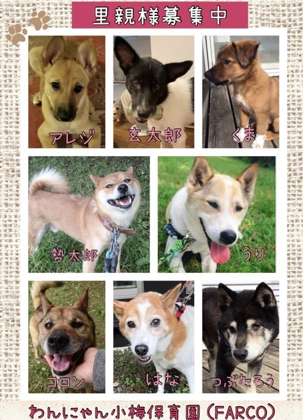 | イベント内容 | 保健所レスキューの 保護犬保護猫譲渡会 13時から15時 (株)住協 川越支店 川越市新宿町1ー16ー6 テント 雨天決行です。 猫も参加です 犬は小型、中型犬、柴犬、など参加です (預かりさんによってこれない子もいますので、希望の子が決まっている方は前日までに事前連絡をお願いします。) 犬猫の詳しい情報はblog、ホームページを参照してください。 http://blogs.yahoo.co.jp/xxxg_01_h HP https://sites.google.com/site/wannyanfarco/home 問い合わせは 08041423180(当日は出れないこともあります) little-quu@nifty.com わんにゃん小梅保育園 参加自由形ですのでお気軽にお越し下さい。 当日、お車でお越しの方はコインパーキングにお願いします ★住協様の駐車場には止めないようにお願いします |