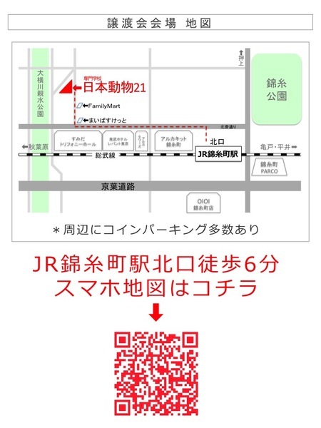 | 開催場所 | 墨田区錦糸1-11-10 4F (専門学校 日本動物21) | ||