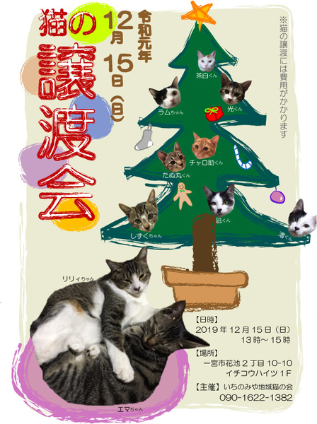 TNR活動の過程でやむをえず保護した猫達の里親探し譲渡会です。