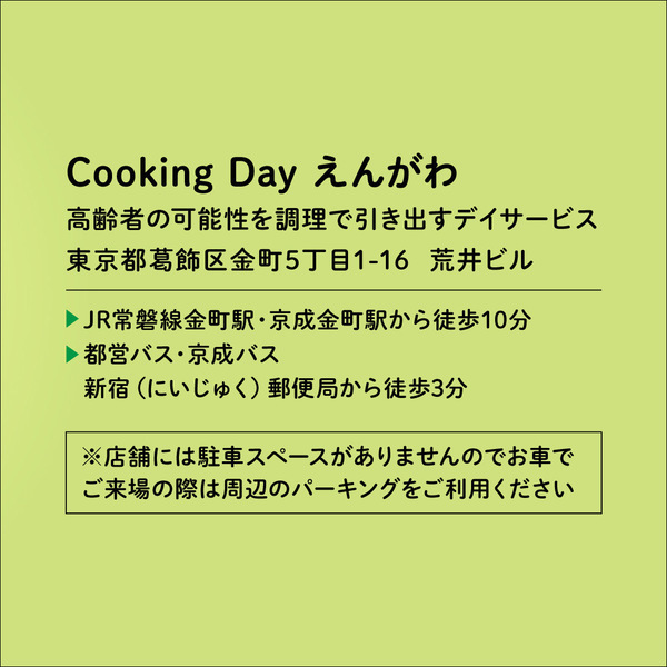 | 開催場所 | 葛飾区金町5丁目1-16「Cooking day えんがわ」 | ||