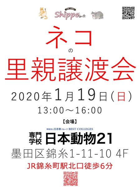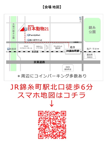 | 開催場所 | 墨田区錦糸1-11-10専門学校 日本動物21 4F | ||