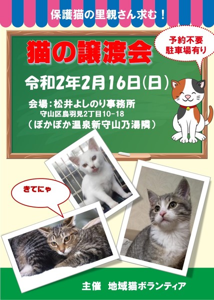 猫の譲渡会 2月16日(日)