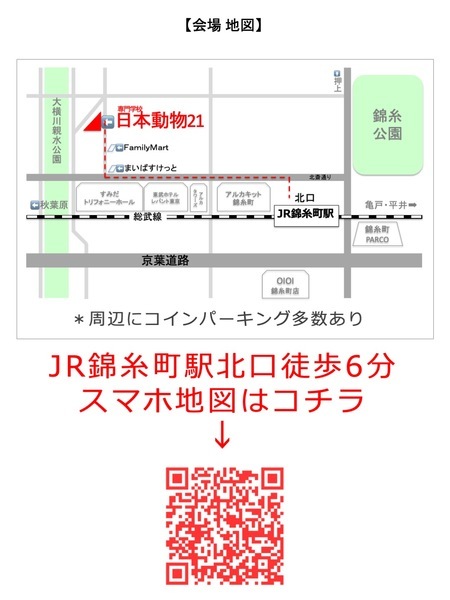 | 開催場所 | 東京都墨田区錦糸1-11-10 専門学校 日本動物21 4F | ||