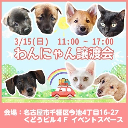 | 開催場所 | 名古屋市千種区今池4-16-27 くどうビル4Fイベントスペース(保護猫カフェ ヘミングウェイ隣) | ||
