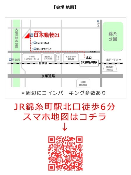 | 開催場所 | 墨田区錦糸1-11-10, 専門学校 日本動物21 4F | ||