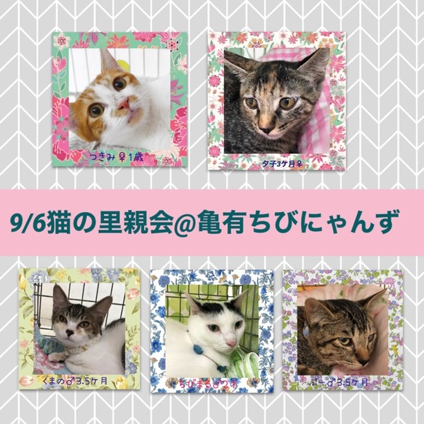 | イベント内容 | コロナ予防の為換気の徹底、検温器あり。 手の消毒とマスクの着用をお願いしております。 9月6日 猫の里親会@亀有ちびにゃんず 日曜日午後2時~5時 東京都葛飾区亀有3-21-12 カルチャースペースあい(屋内開催) ご質問大歓迎です。 分からない事などなんでも聞いて下さい。 ご家族の皆様で生涯、家族の一員としてたっぷり愛情を注いでくださるご家庭をお待ちしております。 ご希望に添えない場合もございますのでご了承下さい。 【以下の方には譲渡しておりません】 ・猫の飼育が許可されていない住居にお住まいの方 ・未成年者、友人同士&同棲でお住まいの方、乳児のいるご家庭 ・単身者、高齢者のみのご家庭の方 ・脱走防止対策にご協力頂けない方 ・経済的に不安定な方(休職中、就職活動中、アルバイト等) ・仔猫の場合は留守番多いご家庭 ・住居の構造を聞かせていただく事があります。(階下への騒音など) 【当里親会は猫さんと里親様とのマッチングを大切にしています】 はじめて猫さんをお迎えする場合に適した猫さん、お留守番の長い里親さんに適した猫さん等、 お迎えする不安など経験豊富なスタッフがお話を聞き、アドバイスさせていただいています。 お気軽にお声をかけてください。 【ご負担頂く費用について】 譲渡の際に譲渡負担金(医療費の一部、譲渡金、お届け時の交通費)を里親様にご負担頂く事により 飼い主のいない猫の継続的治療や保護、新しいご家族の元へ送り出す事ができます。 ご理解とご協力をお願い致します。 ◆ご負担頂く医療費につきましては個々の猫(子猫、成猫、♂、♀)によって異なります◆ ★仔猫12.000~15.000 (ワクチン・ウイルスチェック・駆虫) ★成猫18.000~20.000 (ワクチンウイルスチェック・駆虫・不妊去勢手術済) ★猫をお届けする時の交通費をいただいております。 1500〜実費 【譲渡の条件がございます】 ①終生飼育 ②完全室内飼育 ③不妊・去勢手術 ④譲渡負担金 ⑤契約書の署名捺印 ⑥定期報告義務をご了承ください。 トライアル期間は全ての猫さんに設けております。 トライアル期間を経て初めて正式譲渡となります |