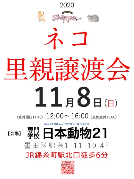 | 開催場所 | 墨田区錦糸1-11-10, 専門学校 日本動物21 4F(受付は1Fです) | ||