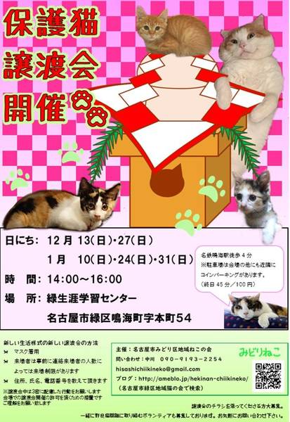 | イベント内容 | 名古屋市緑区生涯学習センターにて開催致します。 コロナ対策の為会場に入場制限があります。来場者が多数の場合はお待ち頂く場合もあります。 よろしければ事前に予約してください。 連絡先 09091932254 中川まで。 |