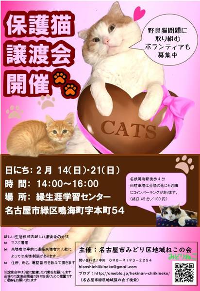 名古屋市緑区地域猫の会(みどりねこ)さんのイベント一覧