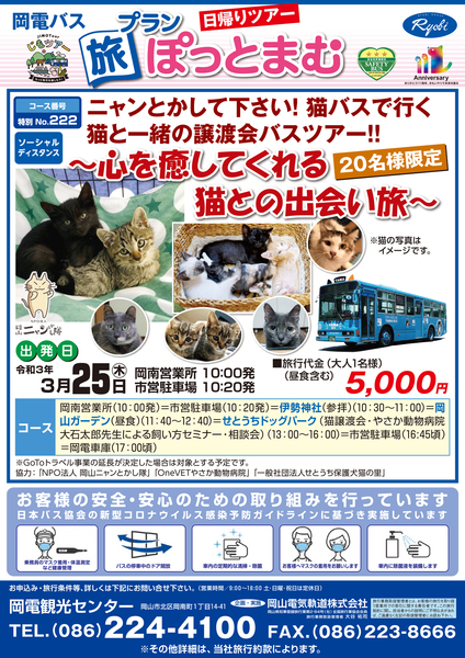 | イベント内容 | 猫ちゃんを飼ってみたい方、お家の猫ちゃんの遊び相手をお探しの方、どうかこの機会に、飼い主のいない猫を家族に迎えてあげて下さい(^^) お申し込みはコチラから→https://www.okajam.jp/kanko/plan/detail/92 |