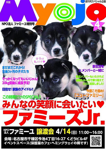 | イベント内容 | 参加予定の仔犬はコチラ http://www.npo-famille.org 可愛い仔犬が家族を探しています! ※同時にバザーも開催 ※お車でお越しの方は近隣に有料パーキングがたくさんあります ※当日に仔犬はお渡しできません(後日お届けします) ※譲渡条件などがございます(完全室内飼育など) ⭐︎希望の仔犬がいましたら、前もってお問い合わせいただくとスムーズです ⭐︎優しいみなさまのお越しをお待ちしています! |