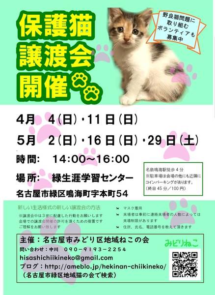 名古屋市緑区地域猫の会(みどりねこ)さんのイベント一覧