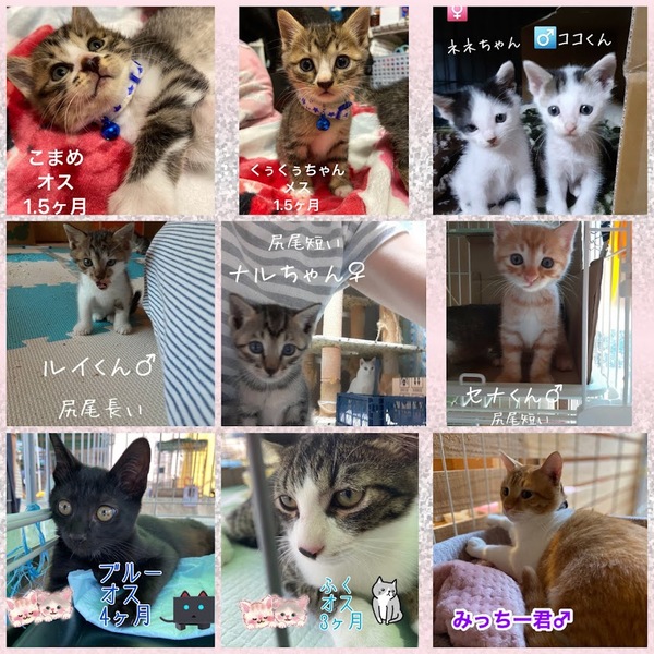 | イベント内容 | TNRするお母さん猫にもれなくついている子猫や、お母さんとはぐれて一匹になった子猫の保護依頼を受け、たくさんの子猫がいます。一匹でも温かい家庭に迎えられるよう譲渡会を開催したいと思います。 30匹程度の保護猫が参加します。恵まれない環境で生まれ、必死に生きていた子猫たちが多くの方のご来場をお待ちしています。 日時 2021年9月26日(日曜日) 時間 11時〜15時 場所 山口県防府市新田250-3 (日電社さん横) 主催 さくらみみねこの会 共催 リックンのおうち探し さくら猫やまぐち マスク着用、検温、手指消毒、連絡先の記入のご協力をよろしくお願い致します。 また現在の状況を鑑み、ご参加は山口県内の方に限らせて頂きたいと思いますので、ご理解お願い致します。 県外の方は個別お見合いに応じますのでご相談お願い致します。 |