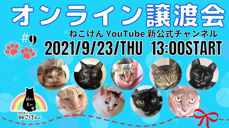 | イベント内容 | ねこけん★YouTube LIVE譲渡会! YouTube『NPO法人ねこけん新公式チャンネル』より配信 https://www.youtube.com/channel/UCkQMHfWUQc-KldxomKcINEA ★チャンネル登録大歓迎!ぜひ、よろしくお願いします★ シェルターや預かりさん宅よりリアルタイムで猫さんをご紹介♪ 譲渡会では緊張で固まってしまう子も多いですが、 普段通りの可愛い様子が見られちゃう!?かも?! ライブ配信中は猫さんへのご質問にも対応させていただきます。 たくさんのご参加お待ちしております! ライブ配信を見逃してしまってもアーカイブ投稿されますので、 いつでも視聴可能です♪ 今後も土日祝日に開催したいと計画中です。 決定次第お知らせしますので、ぜひチャンネル登録お願いします。 -------------------- ▶▶過去配信YouTubeLIVE譲渡会アーカイブはこちら https://youtube.com/playlist?list=PLGxWcXWzmM4So7TE8_FdaeNUOPzQA1wju -------------------- ペットとしてではなく、生涯家族として猫を迎えて下さる方への譲渡となります。 原則『譲渡会』もしくは『完全予約制個別お見合い』にて正式なお申込みを承っております。 譲渡会には家族を待っている猫さん達がたくさん参加します♪ ▽▲ねこけん定期譲渡会▲▽ ★毎月第4日曜日 12:00〜16:00 島忠ホームズ仙川店 〒182-0003 東京都調布市若葉町2-1-7 https://www.shimachu.co.jp/gmshop/tokyo/313.html ※当日11:30より整理券を配布。(各回15分、各回先着3組様) ◆必ずお守り頂く事◆ ①終生飼養 ②完全室内飼養 ③年1回のご報告 ④ペット飼育可能な物件にお住まいであること ただし、以下の該当の方は、譲渡出来ない場合がございます。 ※学生、安定的な収入のない方 ※60歳以上の方は、成猫さんを家族に迎え入れることが出来ます。 里親様のご年齢に応じた成猫の譲渡となりますのでご相談ください。 不妊去勢手術・医療費の一部負担をお願いしております。 ※お届けエリアによっては掲載の譲渡費用とは別途、往復高速料金(実費)をご負担いただく場合がございます。 ご希望の猫さんと家族になるまでの流れや、譲渡時にかかる一部ご負担金などの詳細、契約書のサンプルも含め下記URL①②に掲載しております。ご確認ください。 ①譲渡をご希望の方へ https://nekoken.jp/jotokai/joutokibou/ ②ねこさんと家族になるまでの流れ http://nekoken.jp/jotokai/joto-nagare/ なお、譲渡対象エリアは東京近郊(東京都・神奈川県・埼玉県・千葉県)に限らせていただきます。 対象エリア内であっても、遠方の場合アフターフォローの関係上お断りさせていただく場合もございますのでご了承ください。 ※譲渡会日程がご予定と合わず個別お見合いご希望の方は、各募集サイトからのご応募もしくは下記連絡先までお問い合わせください。 -------------------- [連絡先] ご質問等ございましたらお気軽にお問い合わせください。 NPO法人ねこけん東京本部 https://nekoken.jp/inquiry/ nekoken@cat.email.ne.jp [ホームページ] http://nekoken.jp [Instagram] https://www.instagram.com/nekoken2222/ [ブログ・ボラ日記・YouTubeなど] https://linktr.ee/nekoken フォロー・チャンネル登録よろしくお願いします! |