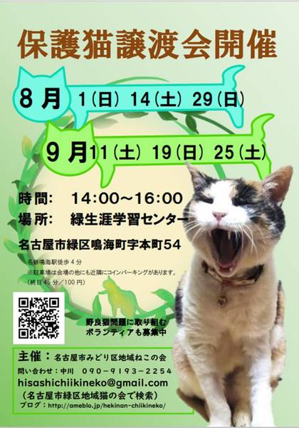 名古屋市緑区地域猫の会(みどりねこ)さんのイベント一覧