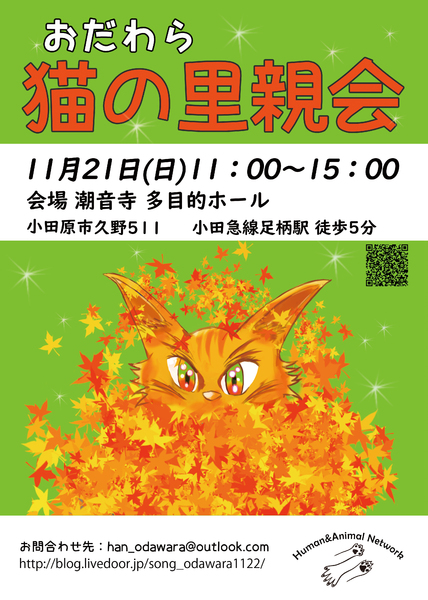| イベント内容 | 日時:2021年11月21日(日)11:00~15:00 会場:潮音寺 多目的ホール 神奈川県小田原市久野511 小田急線足柄駅より徒歩6分 駐車場有(無料) 参照URL http://blog.livedoor.jp/song_odawara1122 【交通案内】 新宿方面から 小田急線足柄駅 横浜方面から JR東海道線:小田原駅 → 小田急線:足柄駅 ※注意※ ナビ検索では 小田原市久野507(潤生園やすらぎの家足柄)で 検索してください。 小田原市久野511 で検索すると迷子になります! ======================== ※コロナ感染予防のマナーにご協力ください※ ◆少人数でご来場 ◆長時間滞在の回避 ◆マスクエチケット ======================== □■□里親さんになるための条件■□■ 1.終生愛情をもって飼育すること 2.完全室内飼い必須 3.ペット飼育可物件であること 4.脱走防止&名札の装着を徹底できること 5.猫を迎える事に家族全員の同意があること 6.譲渡後の定期報告ができること 7.ご家族に猫アレルギーの方がいないこと 8.単身者のご応募は保証人(非常時に飼育対応をしてくれる人)が居ること 9.ワクチン接種と傷病時の適切な治療ができること 10.万が一 猫が脱走した場合は適切な対応ができること 11.医療費と譲渡時の交通費を負担して頂けること 12.ペットを飼育できる十分な収入と時間があること 13.身分証明を提示できること 14.自宅への訪問が可能であること 15.譲渡誓約書の内容を十分理解し、譲渡後も誓約内容を継続的に守って頂けること 16.譲渡が決定した場合、譲受者一部負担金にご協力頂けること |