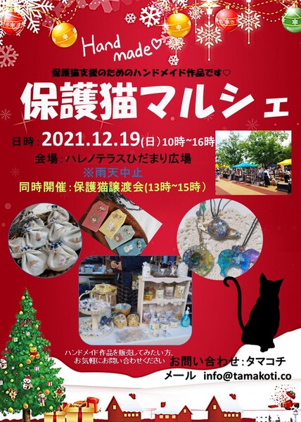 | イベント内容 | 場所 埼玉県さいたま市見沼区島町393番地 ハレノテラス B棟2F会議室 ハレノテラスHP http://hare-terra.com/ 【同時開催】保護猫マルシェ ハレノテラスひだまり広場 (マルシェは雨天の場合は中止になります) ※新型コロナウィルス感染防止のため厳守していただきたい事項がございます マスク着用必須 手指の消毒 入場時アンケート記入(入場制限を行う場合がございます) ※熱のある方の入場はお断りしています ☆当日猫を連れ帰ることはできません ☆譲渡条件あります。譲渡費用発生します。 ☆コロナ感染防止のため、見学のみの入場はお断りしています お問い合わせ Withねこ https://nekotomo.localinfo.jp 保護猫タマコチ:https://cafe.tamakoti.co 他、個人で活動されている保護猫ボランティアさんが多数参加します |