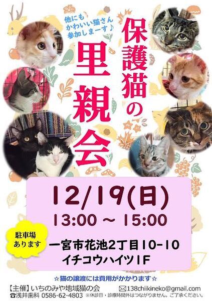 2021年12月19日13時~15時、保護猫の里親会を開催します!