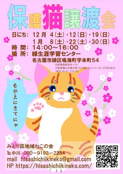 名古屋市緑区地域猫の会(みどりねこ)さんのイベント一覧