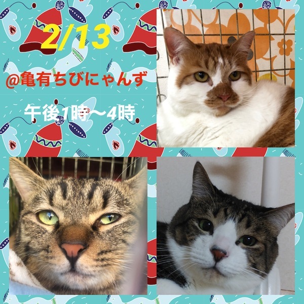 | イベント内容 | 本日は中止いたします。 猫の里親会@亀有ちびにゃんず 2月13日(日) 東京葛飾区亀有3-32-18 住友生命ビル前 屋外開催 13:00 ~ 16:00 手の消毒剤、検温機あり マスク着用、 体調のすぐれない方は見学をご遠慮下さい。 ご質問大歓迎です。 分からない事などなんでも聞いて下さい。 ご家族の皆様で生涯、家族の一員としてたっぷり愛情を注いでくださるご家庭をお待ちしております。 ご希望に添えない場合もございますのでご了承下さい。 【以下の方には譲渡しておりません】 ・猫の飼育が許可されていない住居にお住まいの方 ・未成年者、友人同士&同棲でお住まいの方、乳児のいるご家庭 ・単身者、高齢者のみのご家庭の方 ・脱走防止対策にご協力頂けない方 ・経済的に不安定な方(休職中、就職活動中、アルバイト等) ・仔猫の場合は留守番多いご家庭 ・住居の構造を聞かせていただく事があります。(階下への騒音など) 他、個体により条件が違う場合があります。 【当里親会は猫さんと里親様とのマッチングを大切にしています】 はじめて猫さんをお迎えする場合に適した猫さん、お留守番の長い里親さんに適した猫さん等、 お迎えする不安など経験豊富なスタッフがお話を聞き、アドバイスさせていただいています。 お気軽にお声をかけてください。 【ご負担頂く費用について】 譲渡の際に活動協力金を里親様にご負担頂く事により飼い主のいない猫の継続的治療や保護、新しいご家族の元へ送り出す事ができます。 ご理解とご協力をお願い致します。 ◆活動協力金(譲渡費用)のご負担がございます。 ★仔猫・成猫 1頭20.000 ワクチン・ウイルスチェック・駆虫が済んでいます。 成猫は不妊去勢手術済が済んでいます。 ★猫をお届けする時の交通費をいただいております。 1500〜実費 【譲渡の条件がございます】 ①終生飼育 ②完全室内飼育 ③不妊・去勢手術 ④譲渡負担金 ⑤契約書の署名捺印 ⑥定期報告義務をご了承ください。 トライアル期間は全ての猫さんに設けております。 トライアル期間を経て初めて正式譲渡となります /////////////////////////////////////// https://twitter.com/shosukereiko 【里親さん募集中の猫~猫の里親をさがす会別館】 http://behappynyans.blog.fc2.com/blog-entry-13.html 【猫の里親をさがす会】 https://blog.goo.ne.jp/bobton |