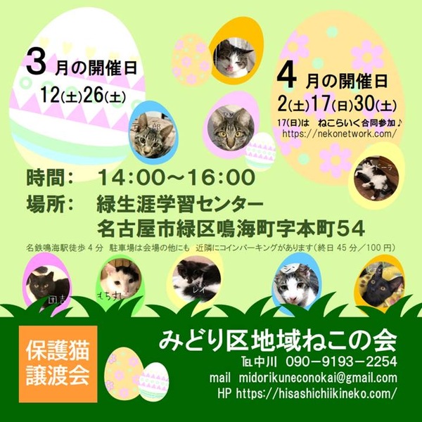 名古屋市緑区地域猫の会(みどりねこ)さんのイベント一覧