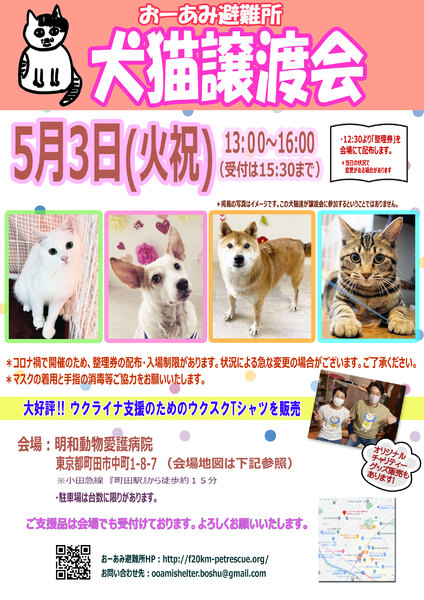 | 開催場所 | 町田市中町1−8−7 明和動物愛護病院 | ||