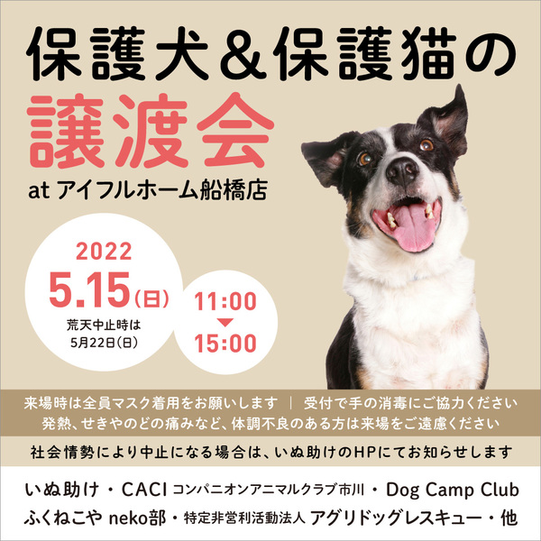 いぬ助けの保護犬が参加します。保護犬と触れ合う良い機会です。