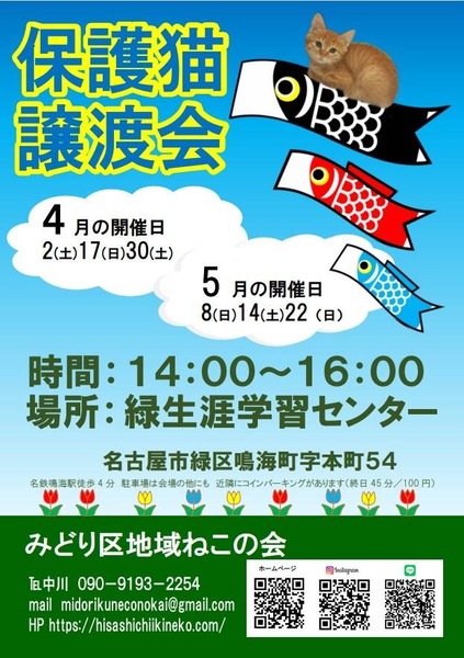 名古屋市緑区地域猫の会(みどりねこ)さんのイベント一覧