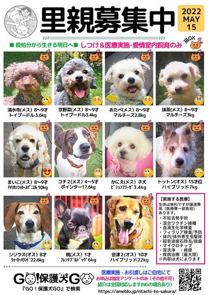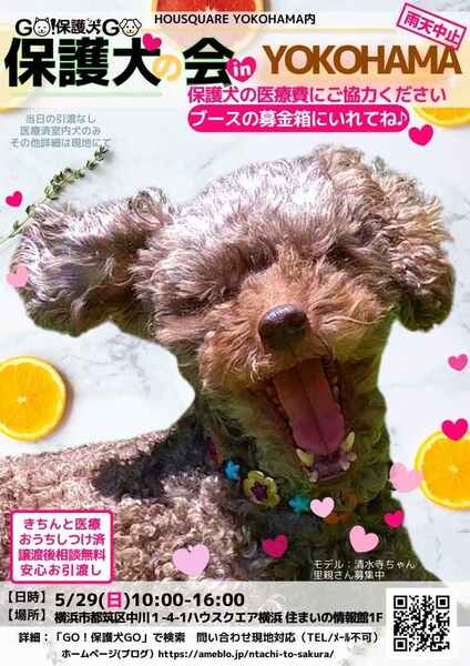 | イベント内容 | 静岡県御殿場市のボランティアGO!保護犬GOです。 初めての会場での保護犬の会開催です! 緊張とワクワクでいっぱいです。 保護している犬達の目の輝きをぜひご覧ください。 GO!保護犬GOの保護犬の会は、卒業犬たちの再勉強にも力を入れています。譲渡後にトイレができなくなってしまった、吠えるようになった、しつけのコツがわからないなどの問題を未然に防ぎ、また早期に修正できるよう、時にイベント内で再しつけをいたします。 特に社会化については、里親さんが困らないよう尽力しております。 今回は、元・フランス三ツ星レストランで修業を積んだパン職人さんによる、完全無添加・農薬不使用栽培・放射能にも配慮し、小麦粉、乳製品、精製された砂糖、ベーキングパウダー を使わない、ワンちゃんと人が安心して食べられるクラッカーを試作販売いたします。 【GO!保護犬GOのモットー】 ■保護活動で得た募金や寄付金は、犬達のために100%利用しております。 NPOや法人ではないので、いただいたお金から交通費、飲食費、スタッフ給料、ガソリン代、交通費、よくわからない運営費などとして一円もいただいておりません。 全国の応援隊から寄せられたフリーマーケット品についても同様でフリマ売上はすべて犬達のため『GO!保護犬GO』活動通帳に入れております。 ■募金や寄付を集めてから運営費を差し引き、そこから医療を実施するのではありません。保護したら一日も早く自費を投入して医療を実施しております。実費のレシートにより活動費を通帳から引き出しております。集めたお金を保護動物のために本当に使うかわからないのではなく、立て替えて支払ったお金を、後からいただいております。したがって、いつまでも医療を待っている犬は一頭もいません。 ■かけた医療費、内容などすべて私がおこたえできます。 ■先住犬・猫ちゃんが幸せになれる譲渡を心がけております。そのため希望にそぐわない子をおススメすることもございます。 ■10年余りで600頭以上を保護・譲渡してまいりました。現在では90%以上の方が面会なしで譲渡しております。過去の譲渡犬返還率:1%未満。相性の良い子をお渡しすることを前提にしております。 ■犬を飼うのには相当の出費があります。犬にかかるお金をケチる方にはお引渡しいたしません。 保健所、殺処分場、ブリーダーから保護した、行き場のない犬達をご覧になってください。 死を目前にしていた犬達の現在の姿です。今は不幸ではありません。明るい未来を信じて今日も保護活動を頑張っております。 詳細はこちらをご覧くださいませ ブログ GO!保護犬GO~知る・見る・伝える→殺処分ゼロへ~ https://ameblo.jp/ntachi-to-sakura/ |