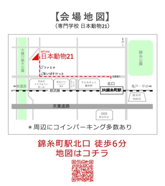 | 開催場所 | 墨田区錦糸1-11-10, 専門学校 日本動物21 4F | ||