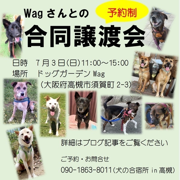 | 開催場所 | 高槻市須賀町2-3 ドッグガーデンwag | ||