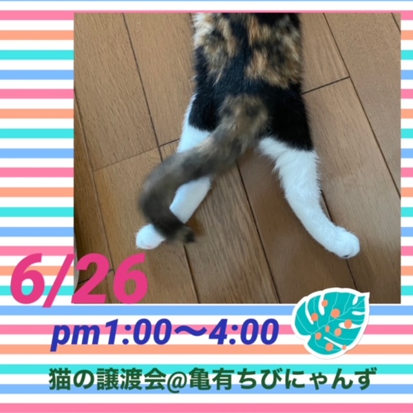 | イベント内容 | 猫の里親会@亀有ちびにゃんず 6月26日(日) 東京葛飾区亀有3-21-12 カルチャースペースあい 13:00 ~ 16:00 手の消毒剤、検温機あり マスク着用、 体調のすぐれない方は見学をご遠慮下さい。 ご質問大歓迎です。 分からない事など何でも聞いて下さい。 生涯家族の一員としてたっぷり愛情を注いでくださるご家庭をお待ちしております。 ご状況によりご希望に添えない場合もございますのでご了承下さい。 【以下の方には譲渡しておりません】 ・猫の飼育が許可されていない住居にお住まいの方 ・未成年者、友人同士&同棲でお住まいの方、乳児のいるご家庭、妊娠中の方、 ・60歳以上の方への子猫譲渡 ・脱走防止対策にご協力頂けない方 ・経済的に不安定な方(休職中、就職活動中、アルバイト等) ・仔猫の場合は留守番の多いご家庭 ・住居の構造を聞かせていただく事があります。(階下への騒音など) ・犬猫を4頭以上飼育している方 他、飼育に適切でないと判断した場合や個体により条件が違う場合があります。 【当里親会は猫さんと里親様とのマッチングを大切にしています】 はじめて猫さんをお迎えする場合に適した猫さん、お留守番の長い里親さんに適した猫さん等、お迎えする不安など経験豊富なスタッフがお話を聞き、アドバイスさせていただいています。 お気軽にお声をかけてください。 【ご負担頂く費用について】 譲渡の際に活動協力金を里親様にご負担頂く事により飼い主のいない猫の継続的治療や保護、新しいご家族の元へ送り出す事ができます。 ご理解とご協力をお願い致します。 ◆活動協力金(譲渡費用)のご負担がございます。 ★仔猫・成猫 1頭20.000 ワクチン・ウイルスチェック・駆虫が済んでいます。 成猫は不妊去勢手術済が済んでいます。 ★猫をお届けする時の交通費をいただいております。 1500〜実費 【譲渡の条件がございます】 ①終生飼育 ②完全室内飼育 ③未手術子猫は適正時期の不妊・去勢手術 ④譲渡負担金 ⑤身分証提示&契約書の署名捺印 ⑥定期報告義務(トライアル中こまめに、譲渡後1.3.6ケ月、1年に一度 ⑦二次譲渡の禁止 以上をご了承ください。 トライアル期間は全ての猫さんに設けております。 トライアル期間を経て初めて正式譲渡となります /////////////////////////////////////// https://twitter.com/shosukereiko 【里親さん募集中の猫~猫の里親をさがす会別館】 http://behappynyans.blog.fc2.com/blog-entry-13.html 【猫の里親をさがす会】 https://blog.goo.ne.jp/bobton |