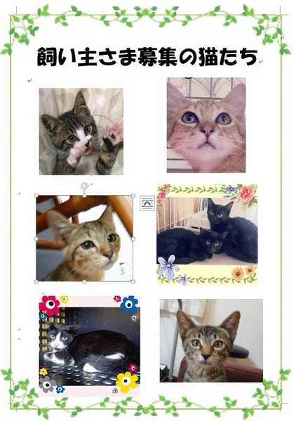 | イベント内容 | 新しい飼い主さまとの出会いを、待ち望んでいる猫たちの譲渡会です。 猫を家族に迎えたいとお思いの方、ペットショップへ行く前に、 ぜひ、この子たちに温かい手をさしのべてください。 ● 駆虫、ワクチン接種、月齢により不妊去勢済 ● 午後1時半~3時 ● 開催場所:コラビア(大府市民活動センター) 国道155号森岡公民館北交差点 ℡0562-44-8500 参加猫の紹介、譲渡の条件、開催場所の地図 等 詳しくは HP(http://obuneko.sakura.ne.jp/ 飼い主さま募集中の猫たち)をご覧ください。 当日、ご都合が悪い場合は個別にお見合いしていただけますので、お問い合わせください。 その他、なんでも obu_neko@yahoo.co.jp までお問い合わせください。 ご来場、お待ちしています |