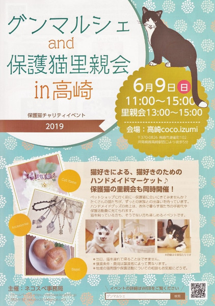 | イベント内容 | 個人ボランティアが主体のアットホームな譲渡会です。 譲渡条件もそれぞれ違いますので、自分に合った保護主さんを探してください。 当日はハンドメイドマーケットを同時開催。 猫を迎えたい方、猫が好きな方、ハンドメイドグッズに興味がある方、 みなさん楽しめるイベントとなっております。 ※マルシェは11時から開催しています。 ------------------------------------ 保護猫を参加させたい方も募集しております。 参加条件、申込方法等はこちらから↓ https://nekospe.localinfo.jp/posts/6172350 |