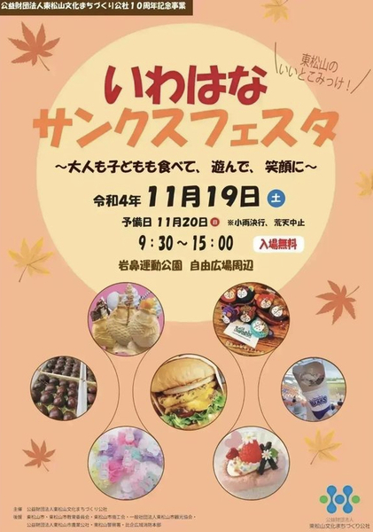 | イベント内容 | いわはなサンクスフェスタ? 〜大人も子どもも食べて、遊んで、笑顔に〜 こちらのイベントにて保護猫カフェねこかつさんの保護猫譲渡会を開催致します。 ?譲渡会会場は東松山陸上競技場外周 天候により中止となった際は翌日20日の開催となります。 岩鼻運動公園自由広場周辺でのイベントは午前9時半より開始しています。 入場は無料です? |