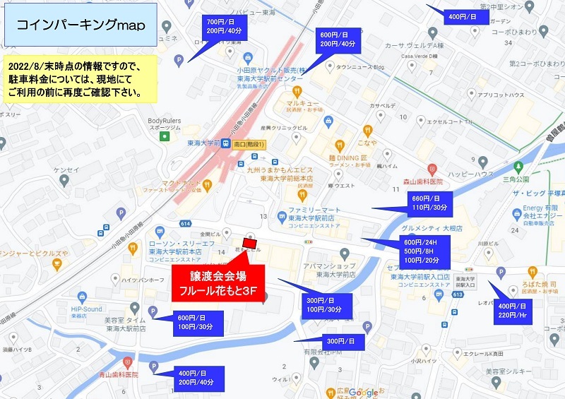 | 開催場所 | 秦野市南矢名1丁目14−12, 花もとビル 3F | ||
