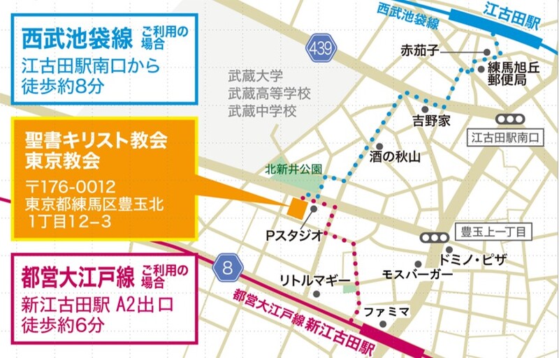 | 開催場所 | 練馬区豊玉北1丁目12−3聖書キリスト教会2階 | ||