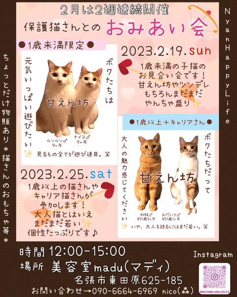 人と猫との出逢いのひろば♡ ほわっとした譲渡会を目指しています⁽⁽ଘ( ˊᵕˋ )ଓ⁾⁾