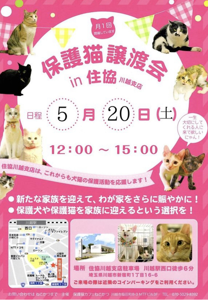保護猫カフェねこかつさん主催の保護猫譲渡を住協川越支店様で開催致します?