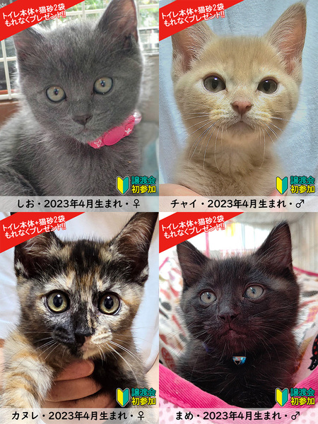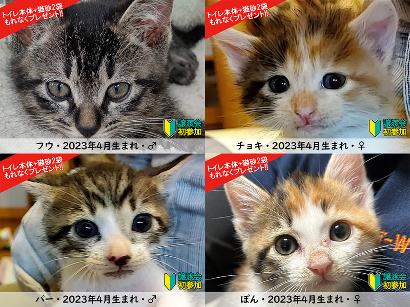 | イベント内容 | 子猫まつり第2弾は20匹の子猫で賑やかになります。 チビ猫いっぱい!猫一色!! 今が一番カワイイ盛り!パパママ家族大募集です! 〇子猫20匹・中猫2匹〇 6月18日(日)/10時~15時 三好ヶ丘カリヨンハウスイベント広場(屋内会場) 愛知県みよし市三好丘2-2-1(無料駐車場48台完備) ▼写真を随時掲載してます http://miyoshi-neko.jp/foster_parents.html ※体調不良等で不参加になる猫もございます。 【ご来場前にお読みください】 子猫まつりは大変混み合います。 混雑時は入場制限を行い、しばらくお待ち頂く場合があります。 猫は早いもの勝ちではございません。 すべての希望者とお話しをしてトライアル先は抽選で決まります。 当選された方のみ担当者からご連絡を差し上げます。 +++++++++++++++++++++++++ 【NPO法人三好ネコの会】 http://miyoshi-neko.jp 【Instagram】 https://www.instagram.com/miyoshi_neko77 【フード支援・クラウドファンディング】 http://miyoshi-neko.jp/fund |