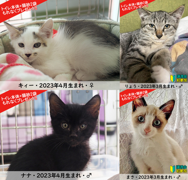 | イベント内容 | 子猫まつり第3弾は20匹(子猫18匹・中猫2匹)参加! 激かわ子猫でいっぱい、子猫で賑やか♪♪ 抱っこするなら午前中がオススメ! カワイイ寝顔、お昼寝を見るなら午後! ▼▼猫好きの祭典▼▼ 7月2日(日)/10時~15時 三好ヶ丘カリヨンハウスイベント広場(冷房完備) 愛知県みよし市三好丘2-2-1 *無料駐車場48台、三好ヶ丘駅から徒歩1分 ▼▼参加萌え猫▼▼ https://miyoshi-neko.jp/foster_parents.html ※当日までにほぼ毎日更新します。 +++++++++++++++++++++++++ 【NPO法人三好ネコの会】 https://miyoshi-neko.jp 【Instagram】 https://www.instagram.com/miyoshi_neko77 【フード支援・クラウドファンディング】 https://miyoshi-neko.jp/fund |