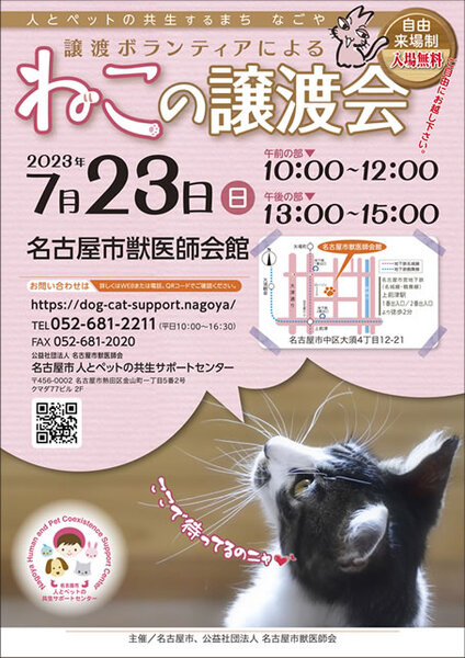 | イベント内容 | ●他のボランティア団体さんとの合同譲渡会になります ●入場無料、自由来場制ですのでお気軽に見学してください♪(混雑時は入場制限あり) ●予約不要ですが、お見合いご希望の方はメールで事前予約いただくと、お待たせすることなくご案内できます info@npo-famille.org ※メール受付は前日16時〆切 ●仔猫は体調を崩しやすく、飼育にはこまめな温度管理が必要です。健康や安全性を考慮し、お留守番6時間以内が理想的です ★詳しい内容・参加猫さんの情報は下記よりご確認ください。 https://ameblo.jp/npo-famille-nagoya/entry-12810967101.html |