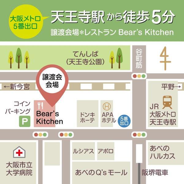 | イベント内容 | 毎月第1日曜の11時~13時と14時~16時の2部制にて「保護ねこの家 譲渡会」を開催しています。 会場は、天王寺駅から徒歩5分。 会場横には、コインパーキングもあります。 また、同日同時刻に「保護ねこの家 オンライン譲渡会」も開催しています。 子猫から大人猫までたくさんの保護猫たちが参加します。 是非、会場まで足をお運びください。 ------------ 【 日時 】 毎月第1日曜 第1部:11時~13時 第2部:14時~16時 ※1部と2部では参加猫が異なります 【 会場 】 Bear's Kitchen 大阪市阿倍野区旭町1丁目1-22 山本ビル1F 【 アクセス 】 大阪メトロ 天王寺駅 5番出口 西へ徒歩5分 会場横にコインパーキングあり ▾アクセス動画▾ https://youtu.be/fx1OtVDPgl4 【 参加条件 】 参加費は無料となります 予約や事前エントリーなどは不要です 未成年者のみ・高齢者のみのご来場はご遠慮ください 【 参加猫 】 当会SNSにて開催7日前より順次案内いたします ▾Instagram▾ https://www.instagram.com/hogonekonoie_st/ ▾Twitter▾ https://twitter.com/hogonekonoie_st ▾ブログ▾ https://ameblo.jp/hogonekonoie/theme-10113553723.html/ 【 詳細情報やお問合せ 】 当会Webサイトをご確認ください ▾保護ねこの家 Webサイト▾ https://www.hogonekonoie.jp/jotokai/ ------------ |