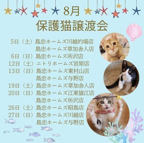 川越店さんでの譲渡会は毎月第4日曜日のみの開催となります。