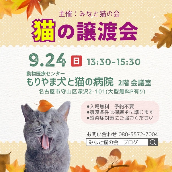 | 開催場所 | 名古屋市守山区深沢2-101 動物医療センター もりやま犬と猫の病院 2階 会議室 | ||