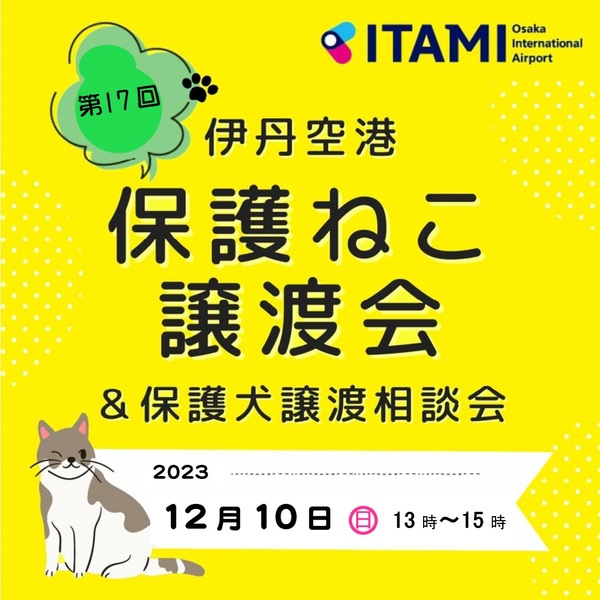 | イベント内容 | 伊丹空港✈保護ねこ譲渡会 https://ameblo.jp/kuukojotokai/ 【日時】 2023年12月10日(日) 13:00~16:00 (最終入場15時) ★毎回30匹前後の行き場を失った猫たちが 新しい家族を待っています。 個性豊かな可愛い猫たちに、ぜひ会いに来て下さい。 【場所】 伊丹空港(大阪国際空港) 北ターミナル4F「星の間」 ※駐車場あり (30分以内無料、以降30分/\150) 【予約不要】直接会場へお越し下さい。 ☆同時開催☆ 【保護犬譲渡相談会】 保護犬の里親になりたいけど、具体的にどうすれば? などの相談や里親募集中の保護犬を写真で紹介しています。 【一時預かりボランティア登録・相談会】 保護猫たちに里親さんが見つかるまで、ご自宅でお預かりいただける方を募集しています。 ※諸条件がございますので、まずはご相談ください。 【チャリティーグッズ販売会】 可愛い手作りの犬猫雑貨を多数取り揃えています。 利益はすべて猫を救う活動に使わせて頂きます。 主催:teamねこのて 共催:特定非営利活動法人C.O.N、オープンシェルター保護猫ふみふみ ペットアダプションセンター宝塚 協力:関西エアポート株式会社 問合せ:kaizaru7★yahoo.co.jp (★を@に変えて下さい) |