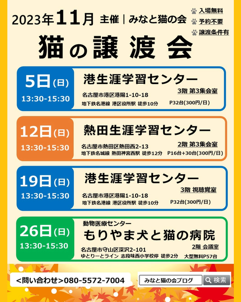 | 開催場所 | 名古屋市港区港陽一丁目10-18 港生涯学習センター 3階 第3集会室 | ||
