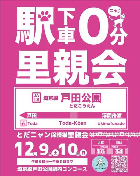 | イベント内容 | 今年最後の里親会開催します。 【日程】 12月9日(土) 12月10日(日) 【時間】 両日ともPM12時30分~15時00分まで 【場所】 埼京線戸田公園駅コンコース 雨天でも開催します。 5頭の猫が参加します。皆可愛い子ばっかりです。 どの猫もお外暮らしから運良く保護された猫ちゃんです。 この5頭の保護猫ちゃんなんとかご縁に結びつけたい。 そう願って年末最後里親会を開催することにしました。 保護猫を里親として迎える選択をして下さい。 皆様のお越しをお待ちしております。 保護猫の様子などはブログをご覧ください。 アメブロ↓ https://ameblo.jp/sakutotaro203/entry-12830844318.html 【ご支援のお願い】 フード銘柄問わず 開封済みOK 但し賞味期限以内でお願い 致します。 トイレシートも在庫 あとわずかとなって しまいました。 レギュラー、ワイド共に 薄地を希望しております。 ご支援も引き続き お願い致します。 よろしくお願いいたします。 |