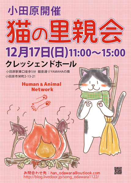 | イベント内容 | 日時:2022年12月17日(日) 11:00~15:00 場所:クレッシェンドホール 主催:Human & Animal Network 会場は小田原駅より5分です! 神奈川県西湘地域で保護された猫たちが集まります! どうぞかわいい猫たちに会いに来てください。 □■□里親さんになるための条件■□■ 1.終生愛情をもって飼育すること 2.完全室内飼い必須 3.ペット飼育可物件であること 4.脱走防止&名札の装着を徹底できること 5.猫を迎える事に家族全員の同意があること 6.譲渡後の定期報告ができること 7.ご家族に猫アレルギーの方がいないこと 8.単身者のご応募は保証人(非常時に飼育対応をしてくれる人)が居ること 9.ワクチン接種と傷病時の適切な治療ができること 10.万が一 猫が脱走した場合は適切な対応ができること 11.医療費と譲渡時の交通費を負担して頂けること 12.ペットを飼育できる十分な収入と時間があること 13.身分証明を提示できること 14.自宅への訪問が可能であること 15.譲渡誓約書の内容を十分理解し、譲渡後も誓約内容を継続的に守って頂けること 16.譲渡が決定した場合、譲受者一部負担金にご協力頂けること 参照URL http://blog.livedoor.jp/song_odawara1122/archives/61053179.html |